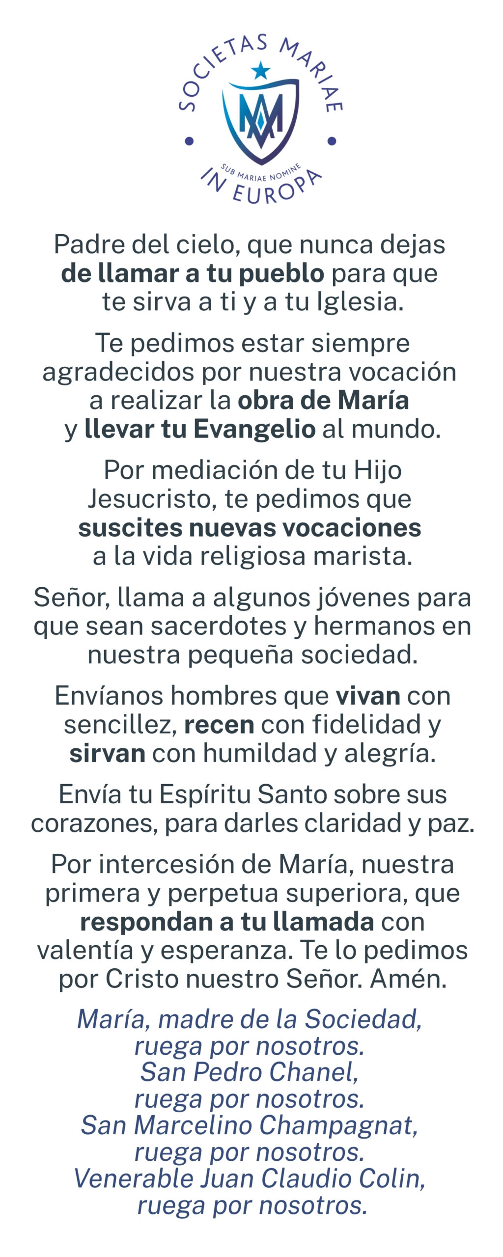 om nieuwe roepingen tot het Maristenleven te doen ontstaan.